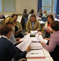Diakin aikuisopiskelijoita artikkeleiden äärellä