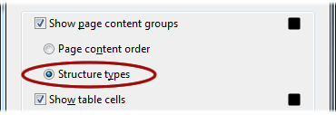 Kuvakaappaus Touch Up Reading Order -ikkunassa valittuna Structure types.