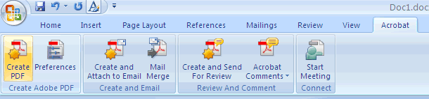 Kuvakaappaus Acrobat-valintanauhasta.