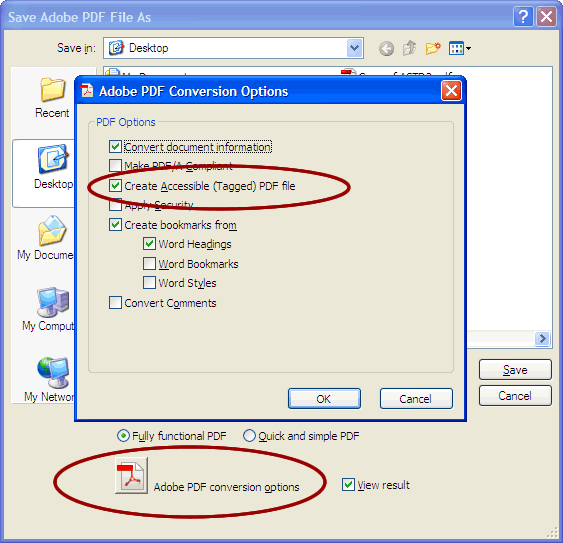 Kuvakaappaus saavutettavan, merkatun PDF-tiedoston valinnasta.