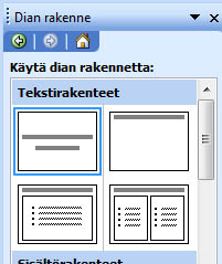 Kuvakaappaus PowerPoint 2003 diojen rakenneikkunasta.