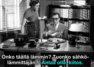 Kuvaruutukaappaus tekstityksen valmisteluvaiheesta Armand Lohikosken elokuvaan Minä soitan sinulle illalla (1954).