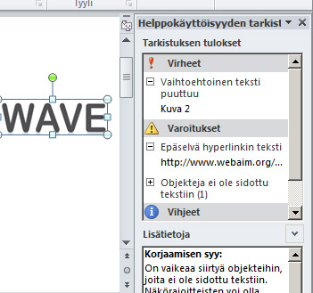 Kuvakaappaus saavutettavuustarkistuksen raportista